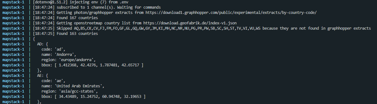 You can select a country. The selected country's code, bounding box, and region are sent to the backend. The backend then pushes three messages to PubSub. Each service downloads the necessary files and reports its status back to Redis, which is polled via the second endpoint.